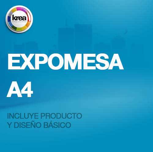 Expositor de mesa personalizado disponible en una o dos caras. Tiene peanas de sujeción. Incluye diseño básico.