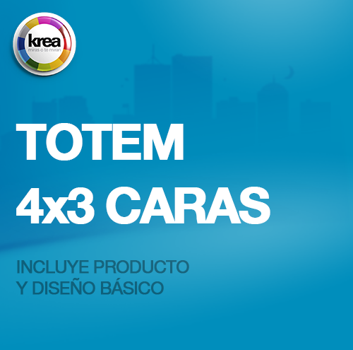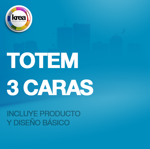 Totem formado por cuatro módulos de tres caras cada uno, con montaje a encastre vertical. Total 12 caras. Tamaño: 50 x 185 cm. Incluye diseño básico.