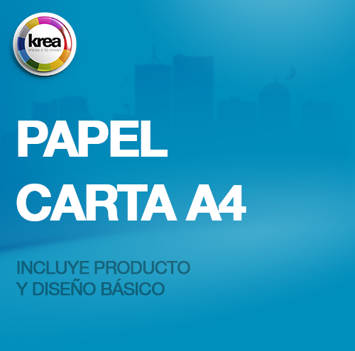 500 hojas de Papel de carta A4 en 90grs impreso por la cara delantera. Incluye diseño básico y envio.